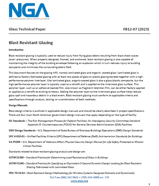 - ISO 16933:2007 – The International Organization for Standardization’s guidelines on “Glass in Building - Explosion-Resistant Security Glazing - Test & Classification for Arena Air-Blast Loading”